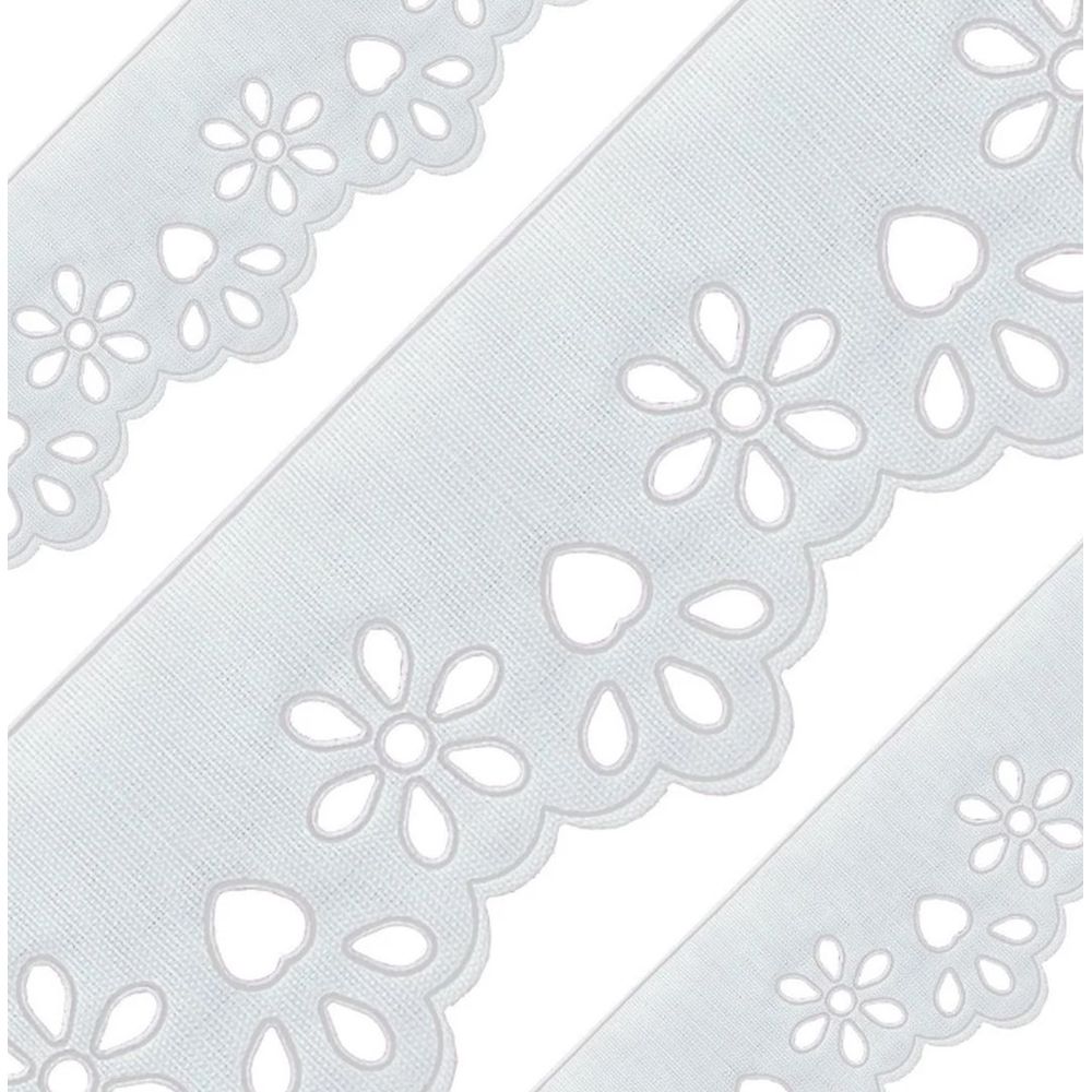 Bico bordado babado. Largura: 4,8. Contém: 10 metros. Composição: superior 65% poliéster 35% algodão, inferior: 100% poliéster.
