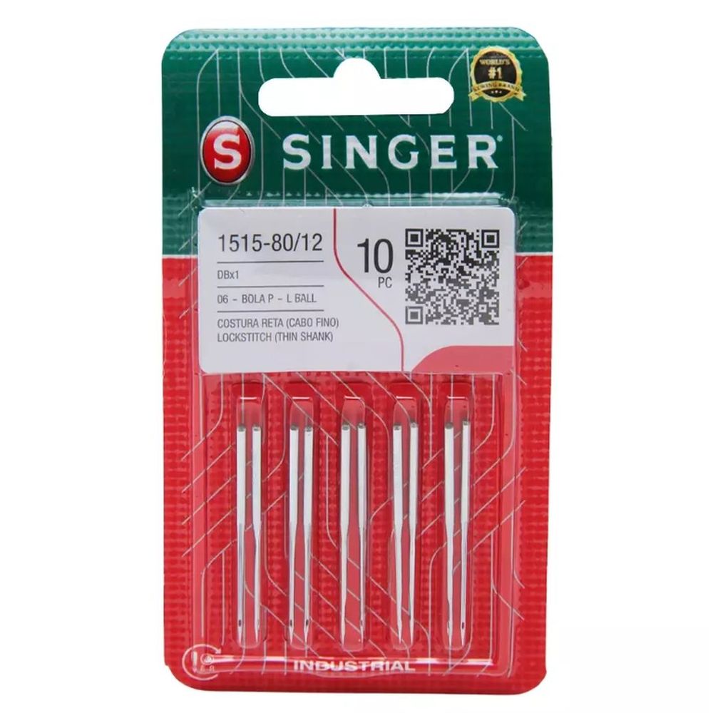 Agulha de máquina. Ideal para costura reta cabo fino. Contém: envelope com 10 unidades.