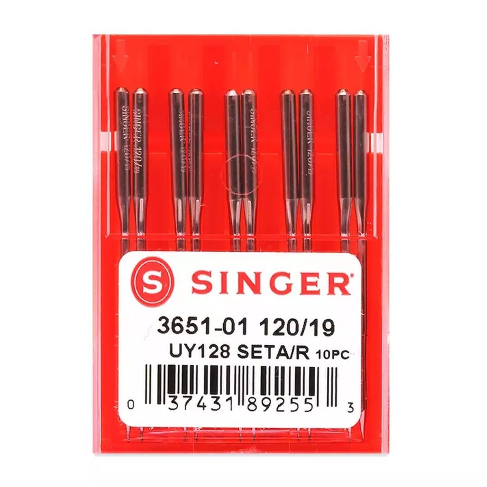 Agulha industrial modelo 3651. Ideal para malha e tecidos elasticos. Agulha paramáquina galoneira cabo longo e máquinafechadeira cabo curto. Contém: cartela com 10 agulhas.