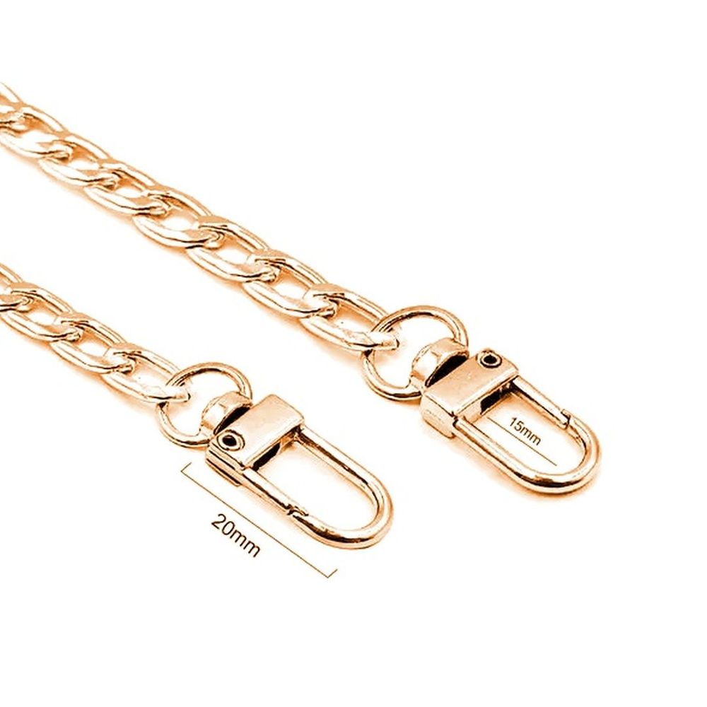 Alça de bolsa corrente com mosquetão. Largura: 0,8cm. Comprimento: 120cm.