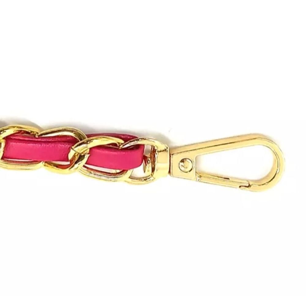 Tamanho: comprimento: 1,20m. Mosquetão:30mm x 15mm. Interno: 18mm x 10mm. Composição: 60% metal/ 40% couro ecológico.