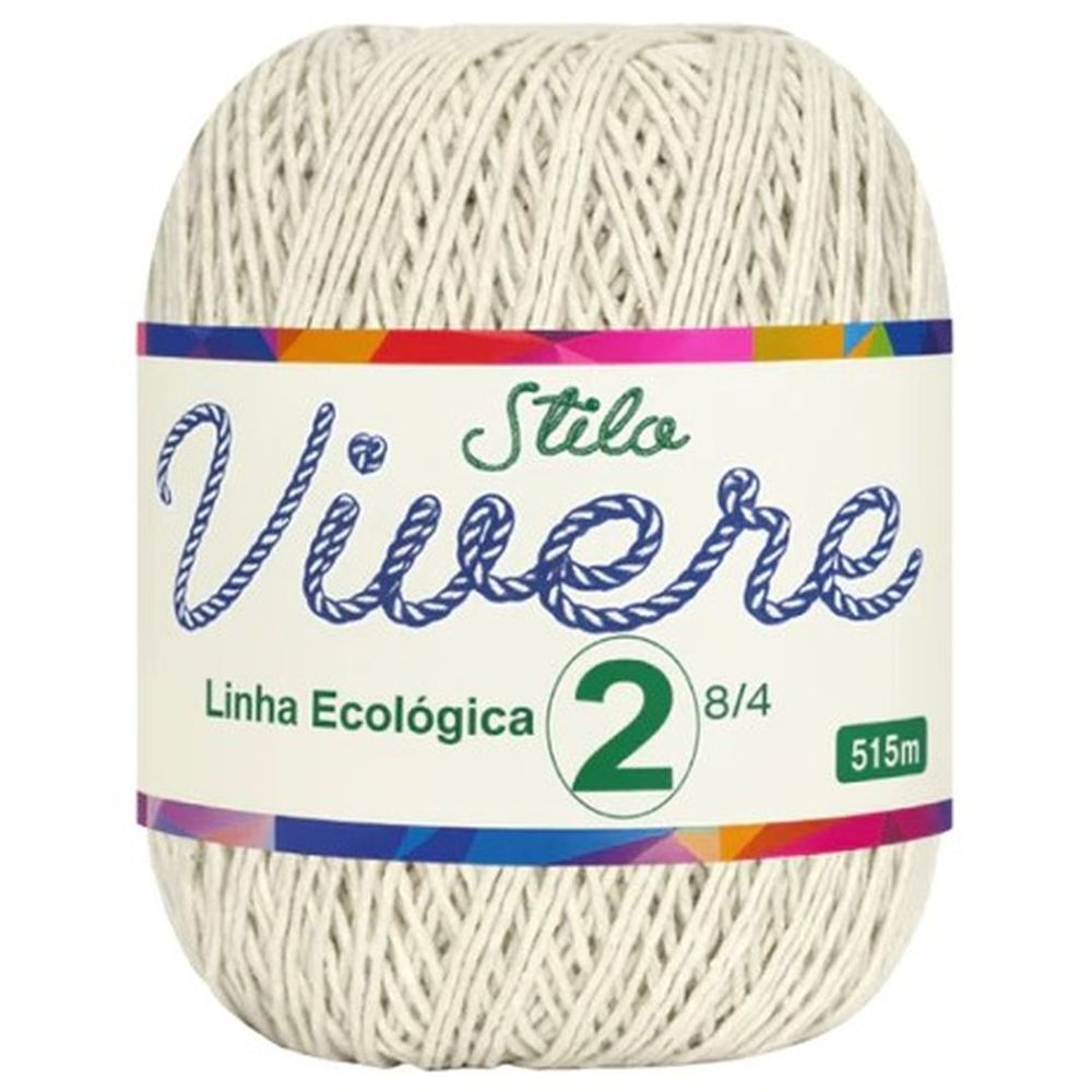 Peso: 185g. Metragem: 515mt. Espessura:nº 2. Título ne: 8/4. Tex: 295. Composição: 85% algodão ecológico e 15% outras fibras. Sugestão de agulhas: crochê: 2mm| tricô: 4mm
