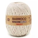 Barbante barroco. Linha: natural brilho.n°6. Peso: 400g. Composição: 97,37% algodão e 2,63% fibra metálica. Espessuras:fio ne 0,64 - 4/6 (922 tex). Agulhas:crochê (3,5 mm a 5,0 mm), tricô (5,0 mma 6,5 mm).
