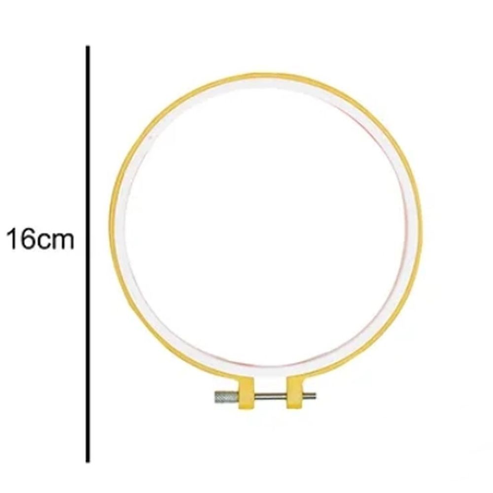 Bastidor de plástico nybc. Tamanho: 16cm. Composiçao: plastico | tarracha: aço.utilizado para todos os tipos de bordados e tecidos em geral. Com ele, também épossível produzir diversas peças de artesanato.