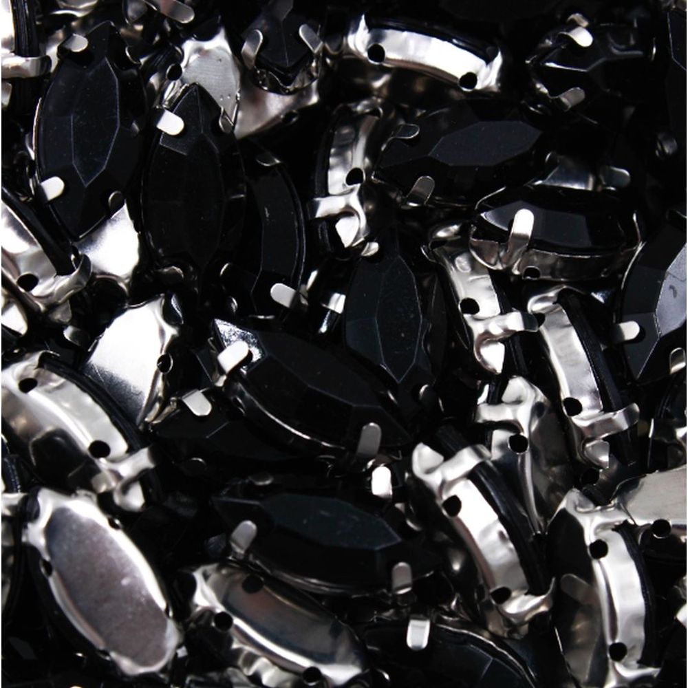 Chaton engrampado formato navete costurável. Tamanho:7mmx15mm. Contém: 10 unidades. Ideal para costumização de roupas, acessórios, sandálias e demais artigos semelhantes.