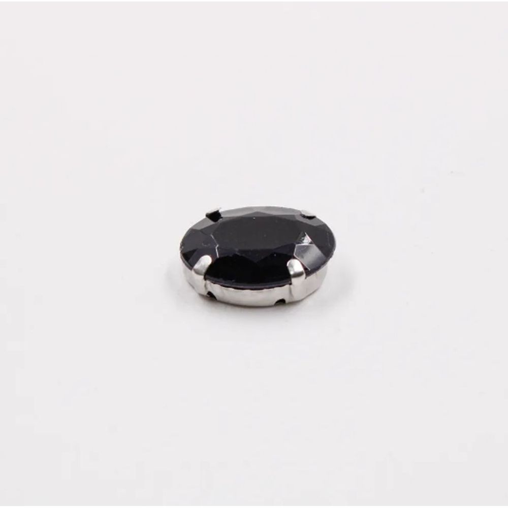 Chaton engrampado formato oval costurável. Tamanho:13mmx18mm. Contém: 10 unidades. Ideal para costumização de roupas, acessórios, sandálias e demais artigos semelhantes.