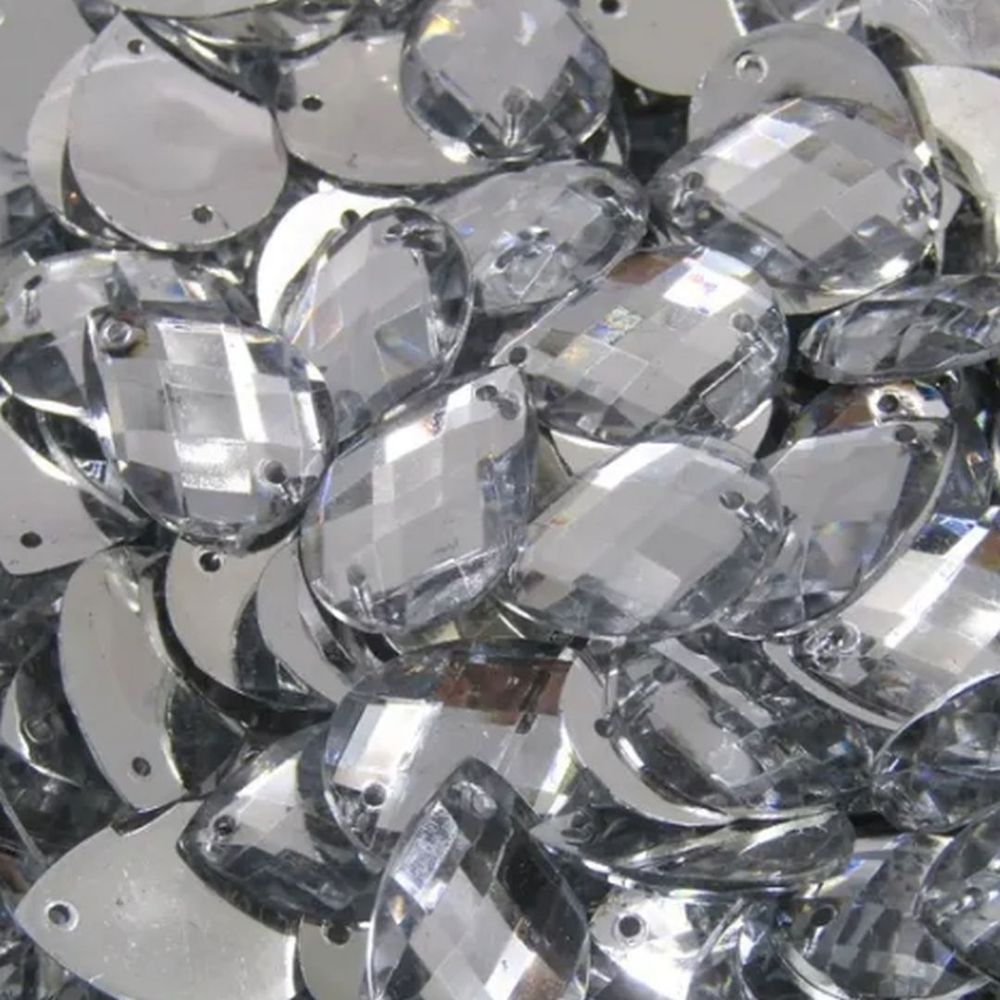 Chaton em forma de gota. Tamanho: 08x13mm. Com 2 furos para costura. Centém: 20unidades por pacote.