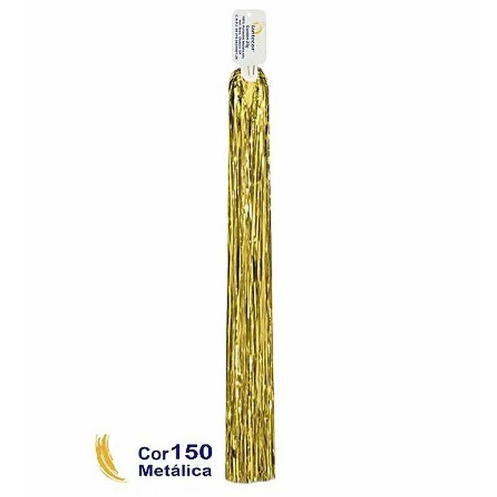 Chicote metalizado | composição: poliéster metálizado | contém: 370 fios de 3 mmde largura com 1,5 m amarrado ao meio ficando com 75 cm de comprimento. | peso:25 gramas | as cores metálicas tem excelente qualidade e seu acabamento refletem como um espelho, tornando seu produtocom alto grau de brilho e sofisticação.| utilização: artesanato, decoração, artigos de festa e acabamentos em geral.