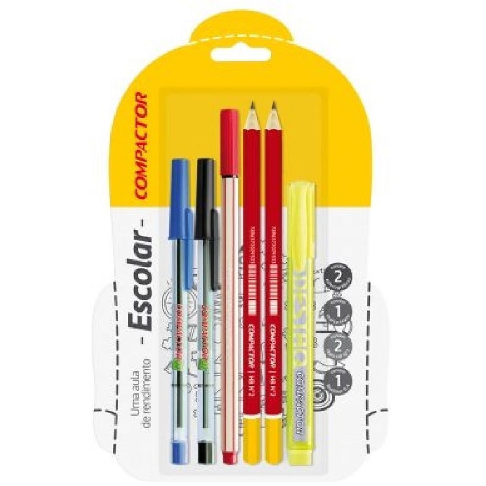 Conj.Escolar 3-Bl/6 2Lap Hb/1Az/1Pr/1Micr.Verm/1Marc