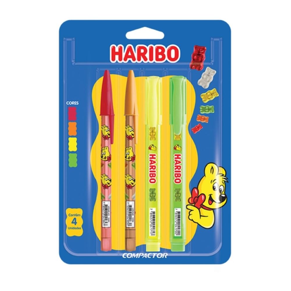Conjunto escolar. Contém: 4 unidades ( 2marcadores destaq neon: amarelo e verde; 2 esferográficas top 2000: vermelho elaranja).