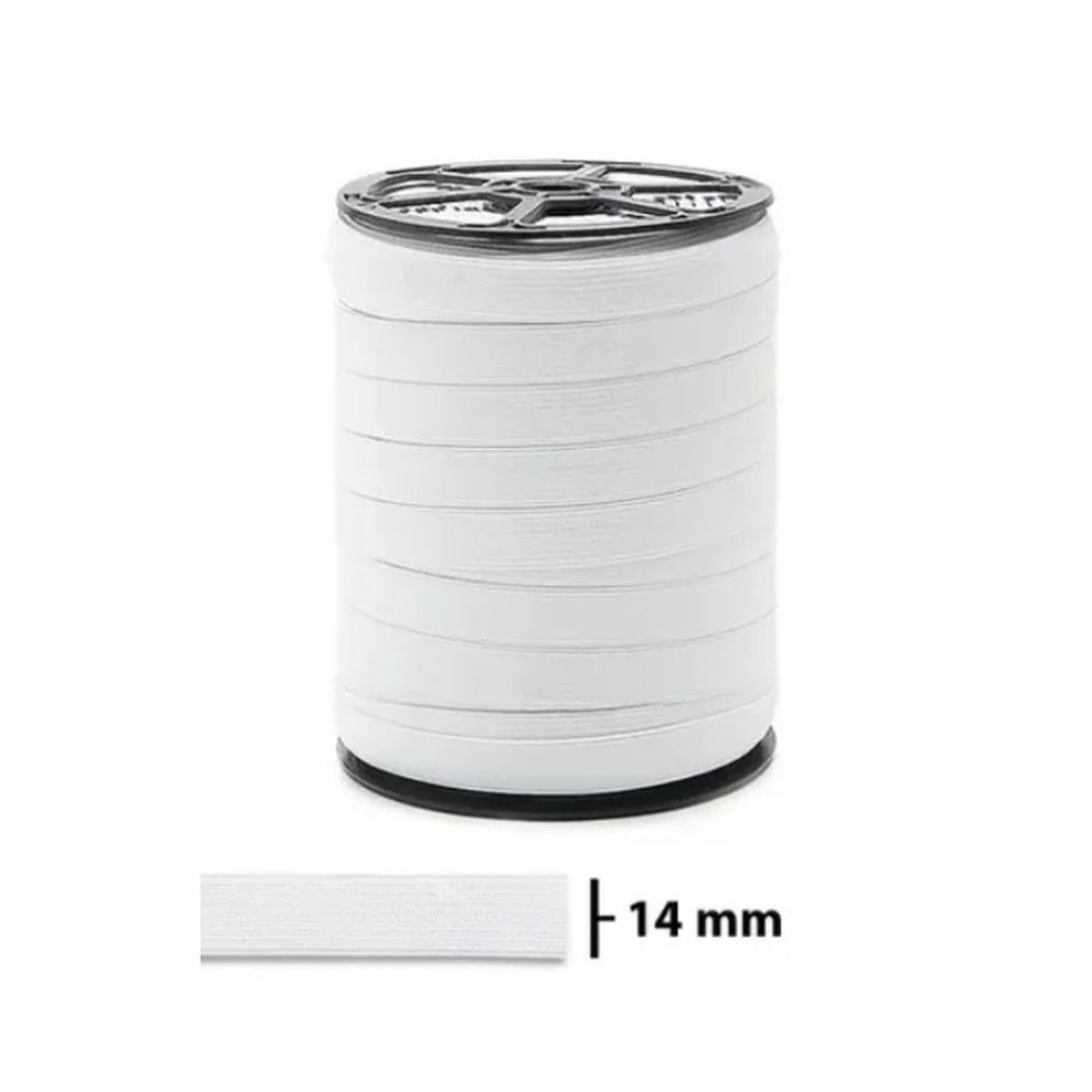 Elastico jaraguá 15 | largura: 14mm | contém: rolo com 100 metros | composição:70% poliéster 30% elastodieno
