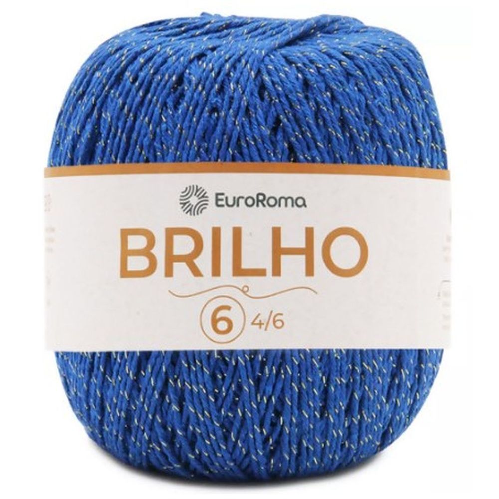 Barbante euroroma brilho ouro tex 984. Contém: 1 unidade com 400 gramas = 406 metros. Espessura: 4x6 composição: 85% algodão e 15% outras fibras. Agulha recomendada: crochê - 3,5mm | tricô - 4,5mm.