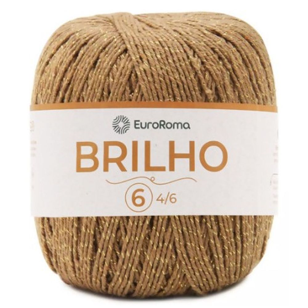 Barbante euroroma brilho ouro tex 984. Contém: 1 unidade com 400 gramas = 406 metros. Espessura: 4x6 composição: 85% algodão e 15% outras fibras. Agulha recomendada: crochê - 3,5mm | tricô - 4,5mm.