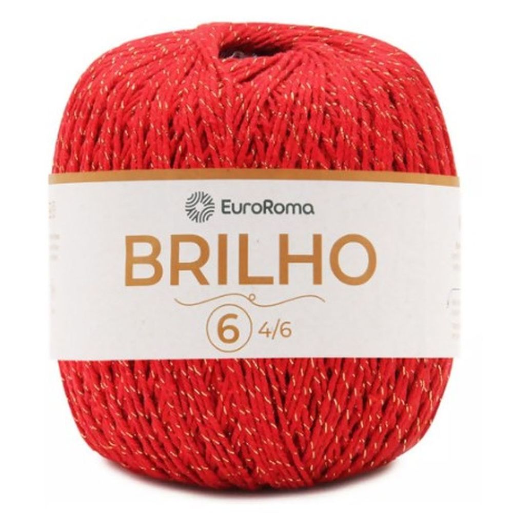 Barbante euroroma brilho ouro tex 984. Contém: 1 unidade com 400 gramas = 406 metros. Espessura: 4x6 composição: 85% algodão e 15% outras fibras. Agulha recomendada: crochê - 3,5mm | tricô - 4,5mm.