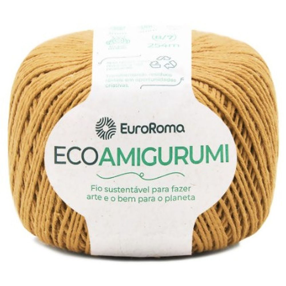 Fio ecoamigurumi.peso: 160g. Metragem: 254m. Espessura: 8/7. Tex: 526. Composição: 85% algodão reciclado, 15% outras fibras. Sugestão de agulha para crochê: 3mm. Sugestão de agulha para tricô: 4mm.