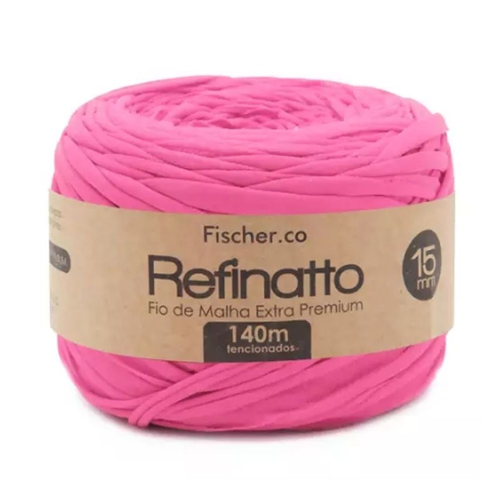 Fio de malha extra premium refinatto fischer. Contém: 1 unidade com 140 metros tensionados. Espessura: 15mm aproximadamente. Composição: 94% poliéster e 6% elastano.
