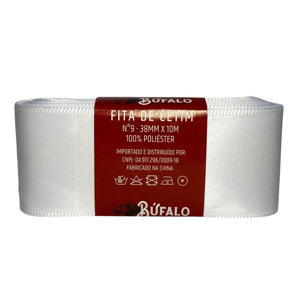 - Fita Cetim Bufalo N.9 38Mm Branco 10Mt