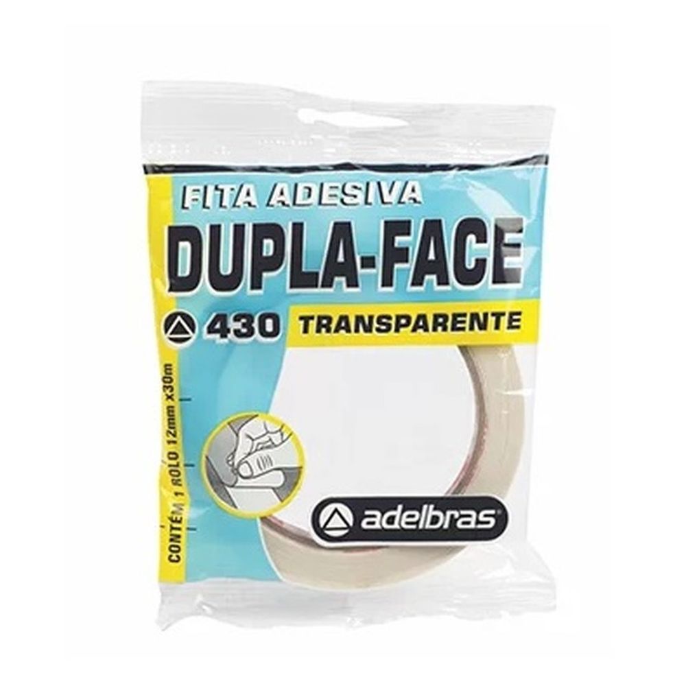 Fita dupla face ref.430 transparente acrílico aldebras. Dimensões: 12mmx30m. Contém: 1 rolo. Ideal para uso de fixação de cartazes, enfeites ou arranjos, montagens, uso geral em decoração.