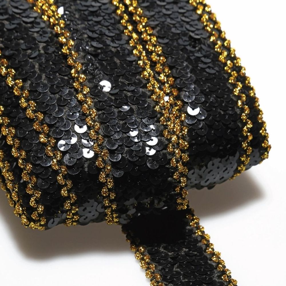 Galão passamanaria 160. Expessura: 42mm.comprimento: 20 metros. Composição: 100% poliéster. Detalhe em cor ouro.