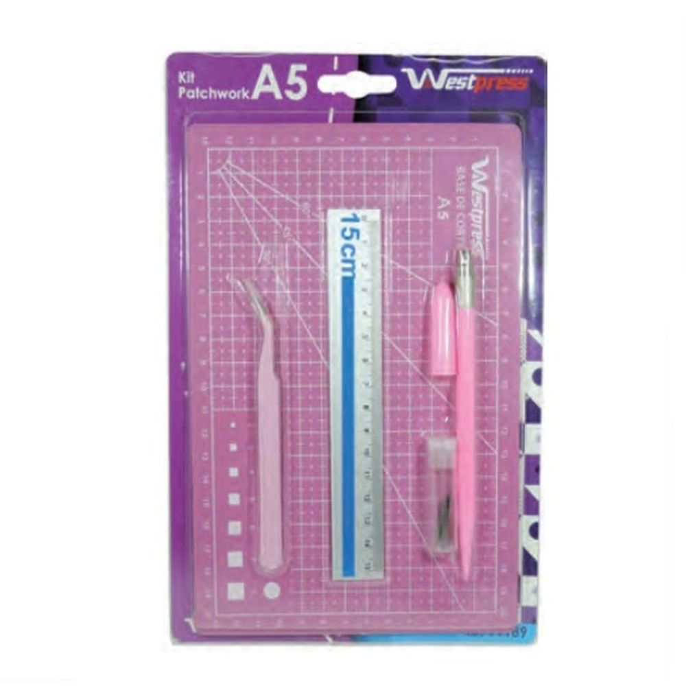 Kit base de corte 22x15 a5 com regua 15cm estilete de precisão e pina com rabicho.