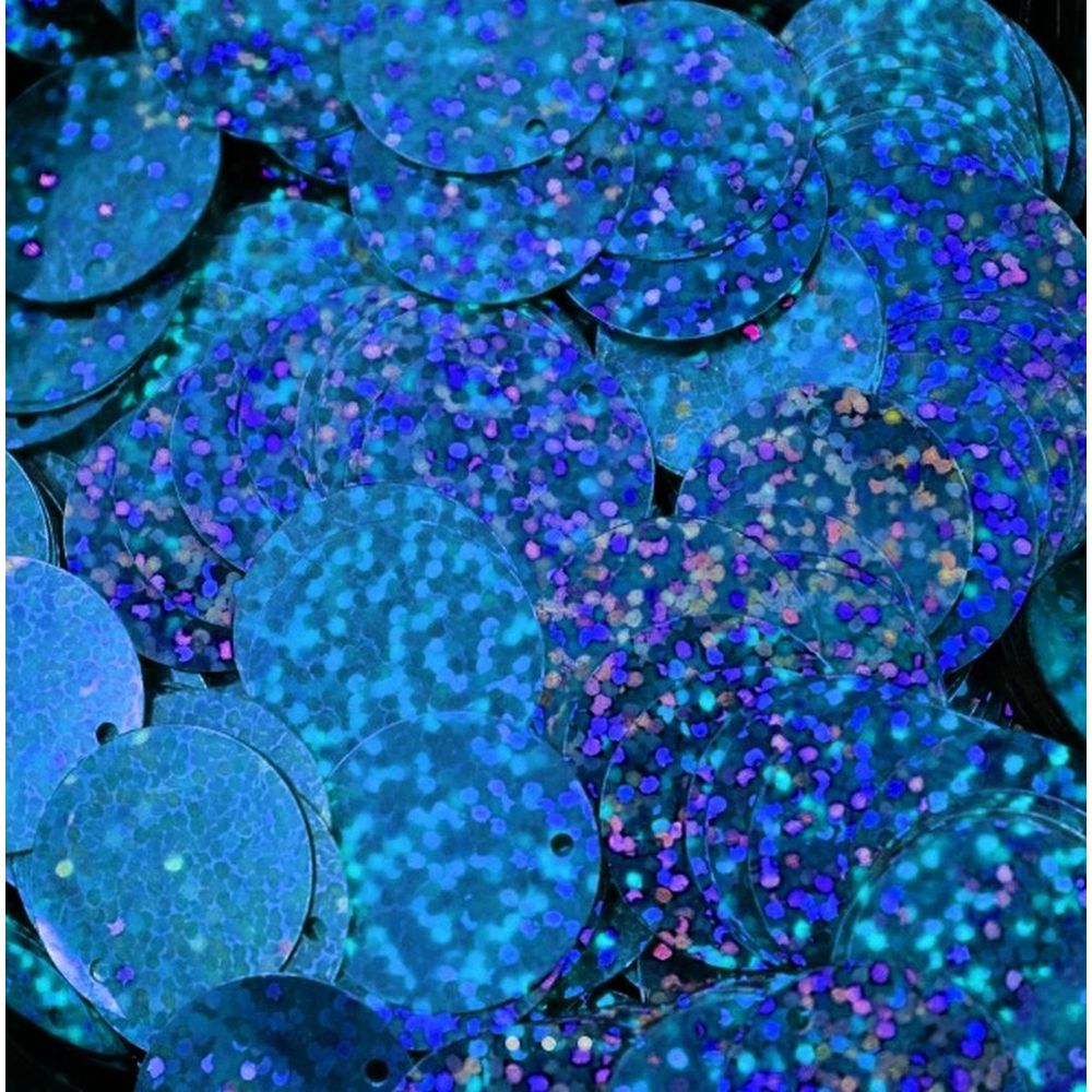 Paete redondo holográfico. Tamanho: 20mm. 1 furo. Pacote com 50g.