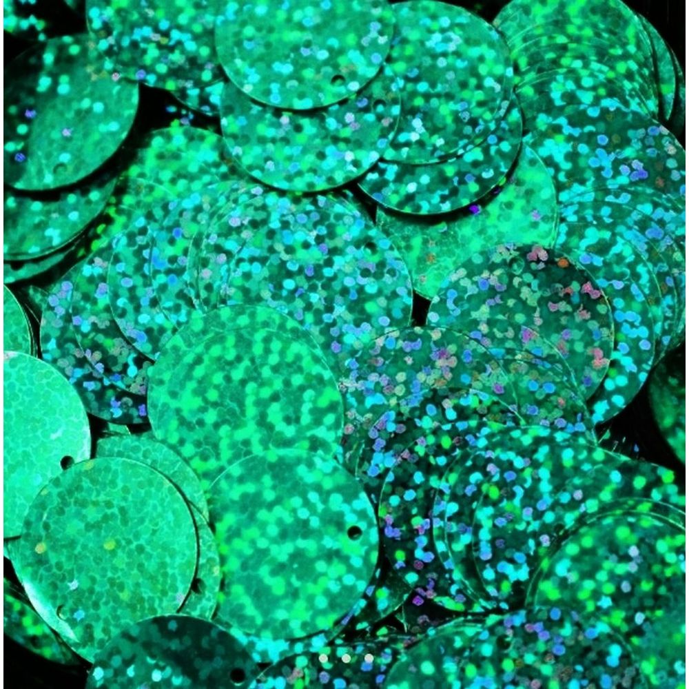 Paete redondo holográfico. Tamanho: 20mm. 1 furo. Pacote com 50g.