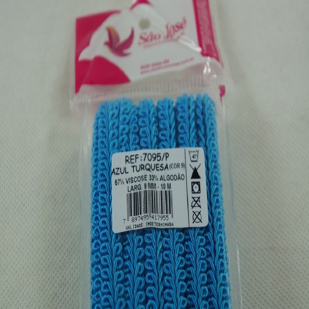 Largura: 9mm. Contém: peça com 10 metros. Composição: 67% viscose 33% algodão.