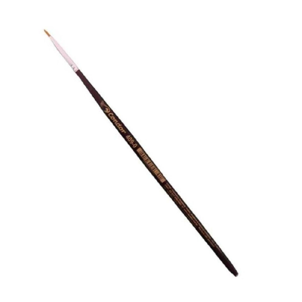 Pincel artístico ref.409 n.0. Contém: 1unidade. Ideal para detalhes, linhas, arabescos, acabamentos, óleo e acrílica. Pelo/cerdas: filamento sintético toray dourado. Cabo: curto vinho. Virola: allumínio. Formato: redondo filete.