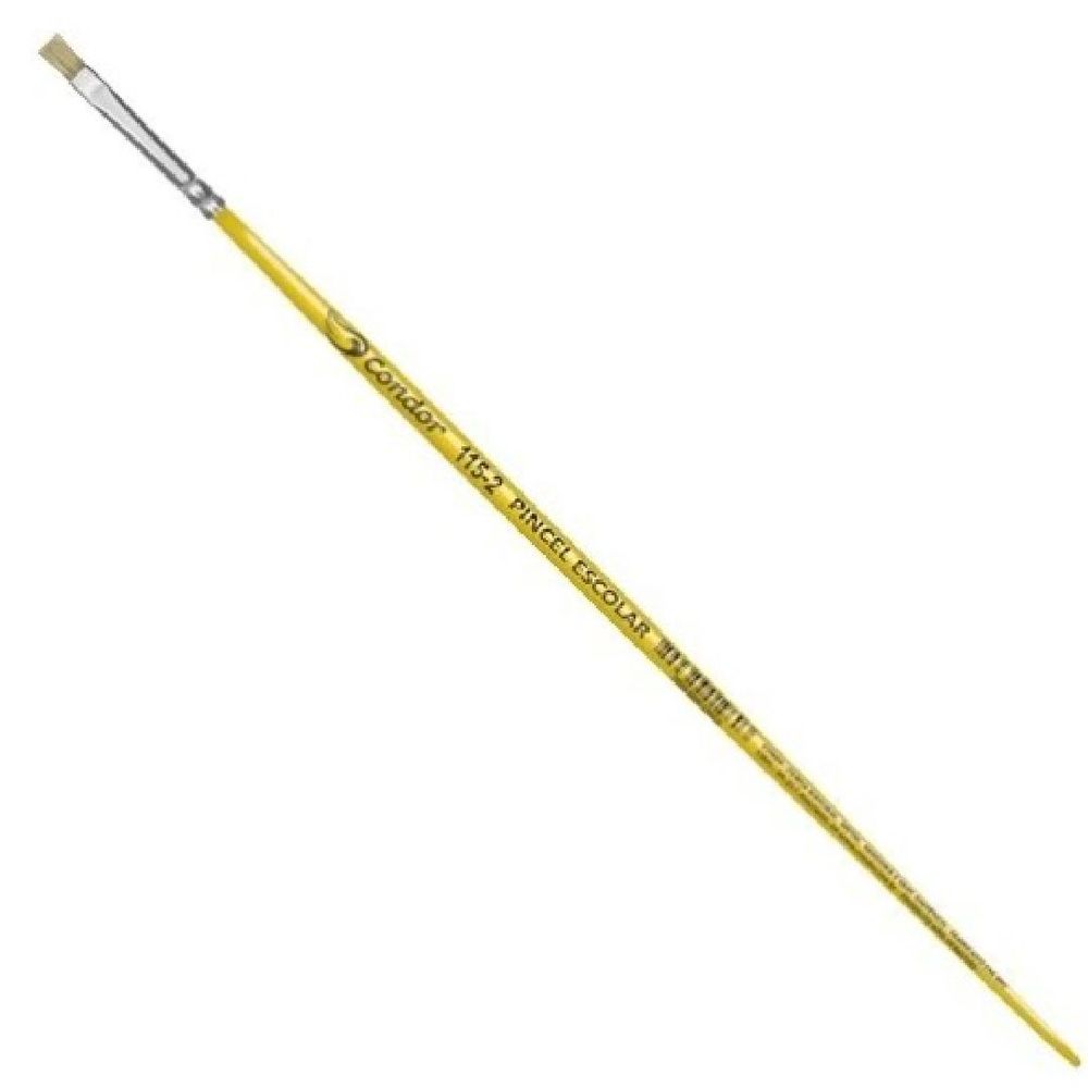 Pincel condor escolar ref.: 115 | tamanho: 2 | contém: 1 unidade | composição:filamento sintético, virola em alumínioe cabo de madeira. | pincel chato cabo longo. Ideal para cerâmica, tela, painel,mural e madeira.