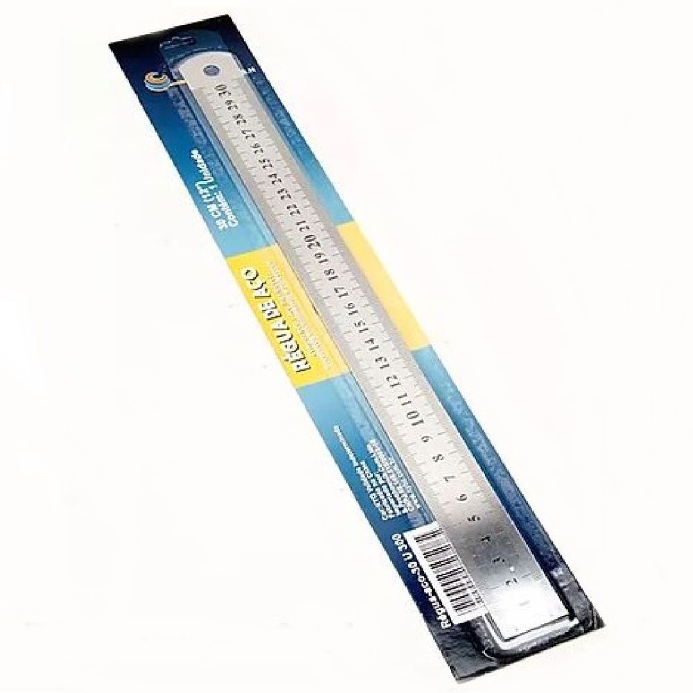 Régua de aço | tamanho: 30cm(12") | contém: 1 unidade | composição: aço inoxidável | graduação em milímetros e polegadas.