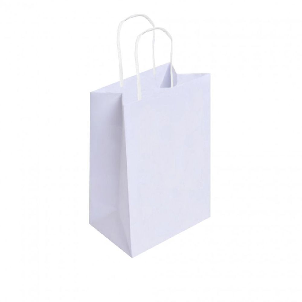 Sacola m | cor: branco | medidas:25,0x10,5x31,0 | composição: papel kraft branco| contém: 10 unidades