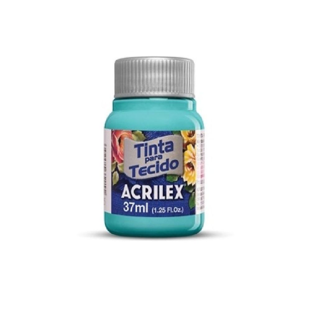 Tinta acrilex para tecido fosca. Contém:1 unidade com 37ml. Apresentada em vários tons de cores foscas, não tóxica. Muito resistente a lavagens. Pode ser aplicada com pincel, esponja ou carimbo, em tecidos de algodão sem goma, não sintéticos. Lavar o tecido antes da pintura, para retirar os resíduos de goma. Após a pintura, aguarde 72 horas para lavagem.