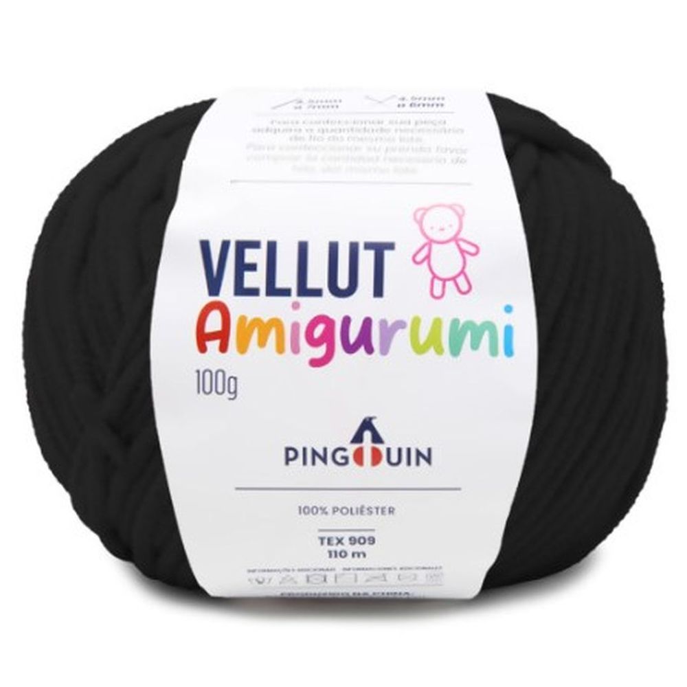 Vellut amigurumi tex 909. Contém: 100g/110mt. Composição 100% poliéster. Agulhacrochê 4,5mm - 7mm. Agulha tricô 4,5mm -6mm.